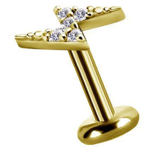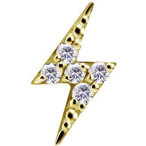 18 Karat Gold Threaded Attachment mit 0,8 mm Innengewinde in Blitzfrom mit 5 kleinen Swarovski® Zirconia, Größe 7 mm, normiertes Schraubsystem, Ohrpin, Piercing